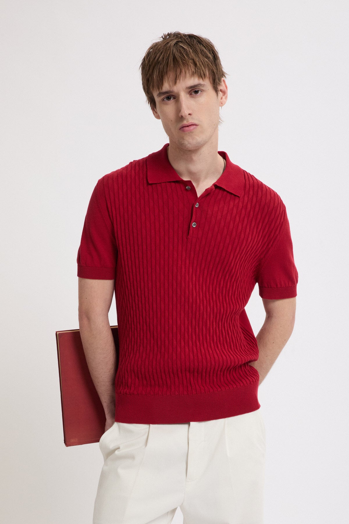 Das Pattern Stitch SS Polo besteht aus 100% Baumwolle, sorgfältig ausgewählt für ihre langlebige Qualität. Baumwolle bietet natürliche Atmungsaktivität und Strapazierfähigkeit und eignet sich ideal für den täglichen Gebrauch. Das besondere Highlight ist das diamantförmige Strickmuster auf der Vorderseite, das durch präzise Stricktechnik entsteht.