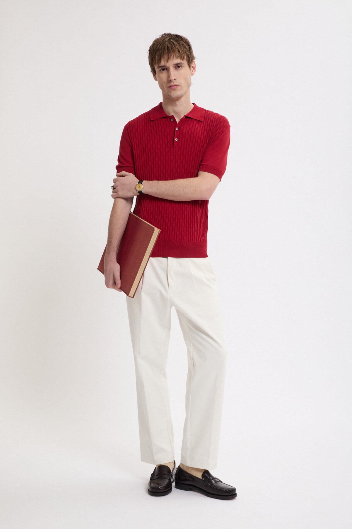 • Das Pattern Stitch SS Polo besteht aus 100% Baumwolle, sorgfältig ausgewählt für ihre langlebige Qualität. Baumwolle bietet natürliche Atmungsaktivität und Strapazierfähigkeit und eignet sich ideal für den täglichen Gebrauch. Das besondere Highlight ist das diamantförmige Strickmuster auf der Vorderseite, das durch präzise Stricktechnik entsteht.