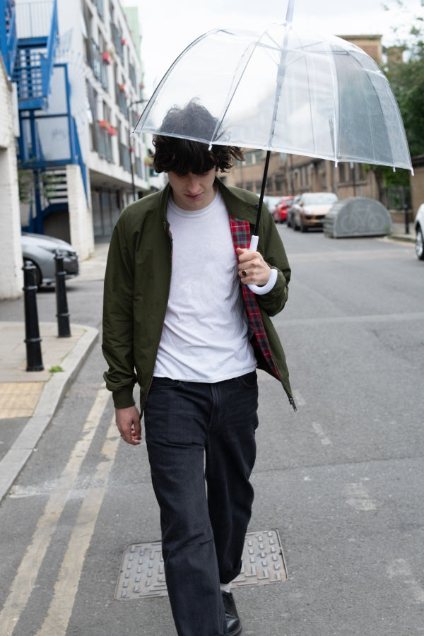 Sapevate che prima della nascita di Baracuta, avvenuta nel 1937, la famiglia Miller produceva e confezionava già abbigliamento impermeabile per conto di marchi famosi dal 1912? Non è un caso infatti che la città d’origine della famiglia fosse proprio Manchester, una dei luoghi più piovosi del Regno Unito. Proprio questo si dimostrò essere uno dei presupposti principali che portarono i Miller a produrre abbigliamento impermeabile, affinando nel tempo le proprie competenze ed abilità, fino a diventare noti per l’altissima qualità dei loro prodotti. Questi anni di esperienza si rivelarono davvero preziosi, consentendo alla famiglia di dare vita ad un marchio iconico del patrimonio culturale britannico, e ad un capo che ne è la perfetta rappresentazione: il famoso G9 Harrington in Baracuta Cloth.