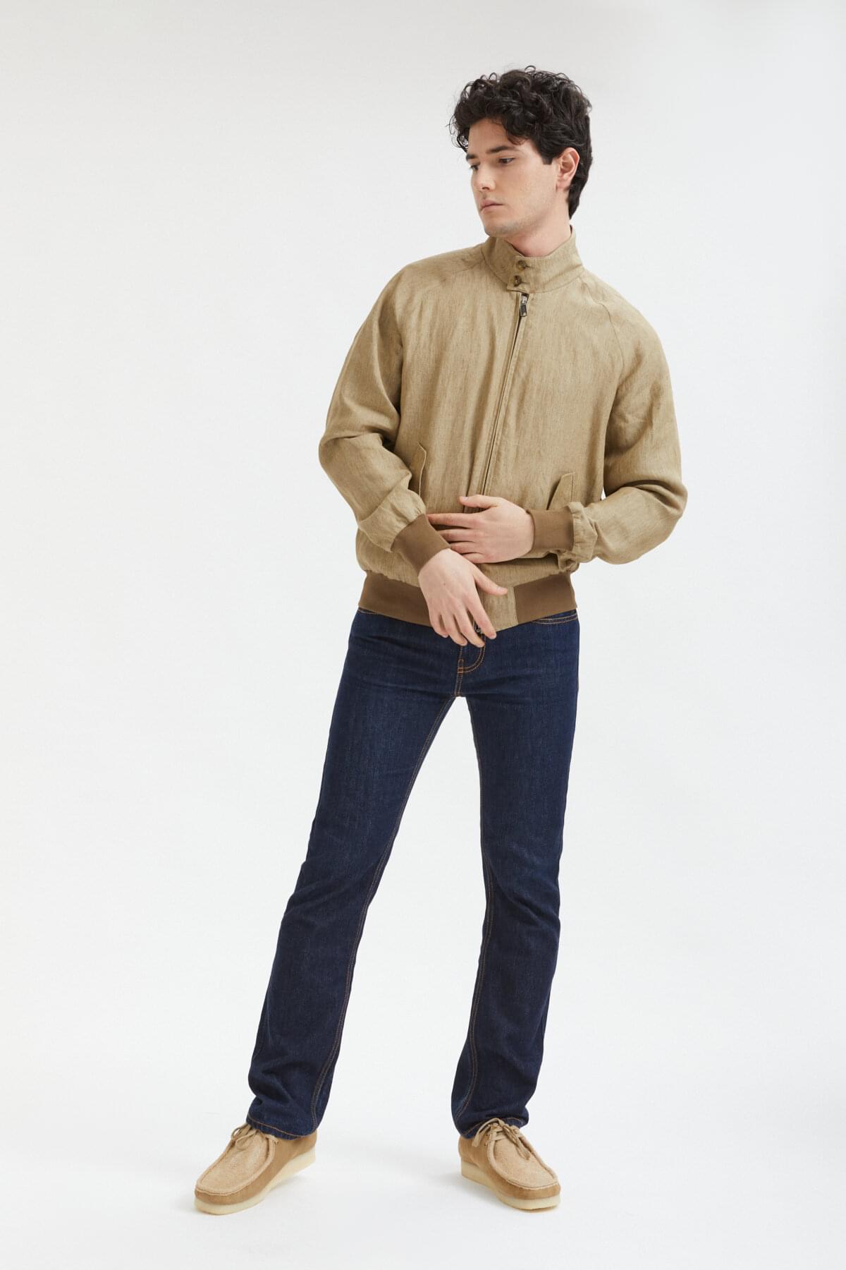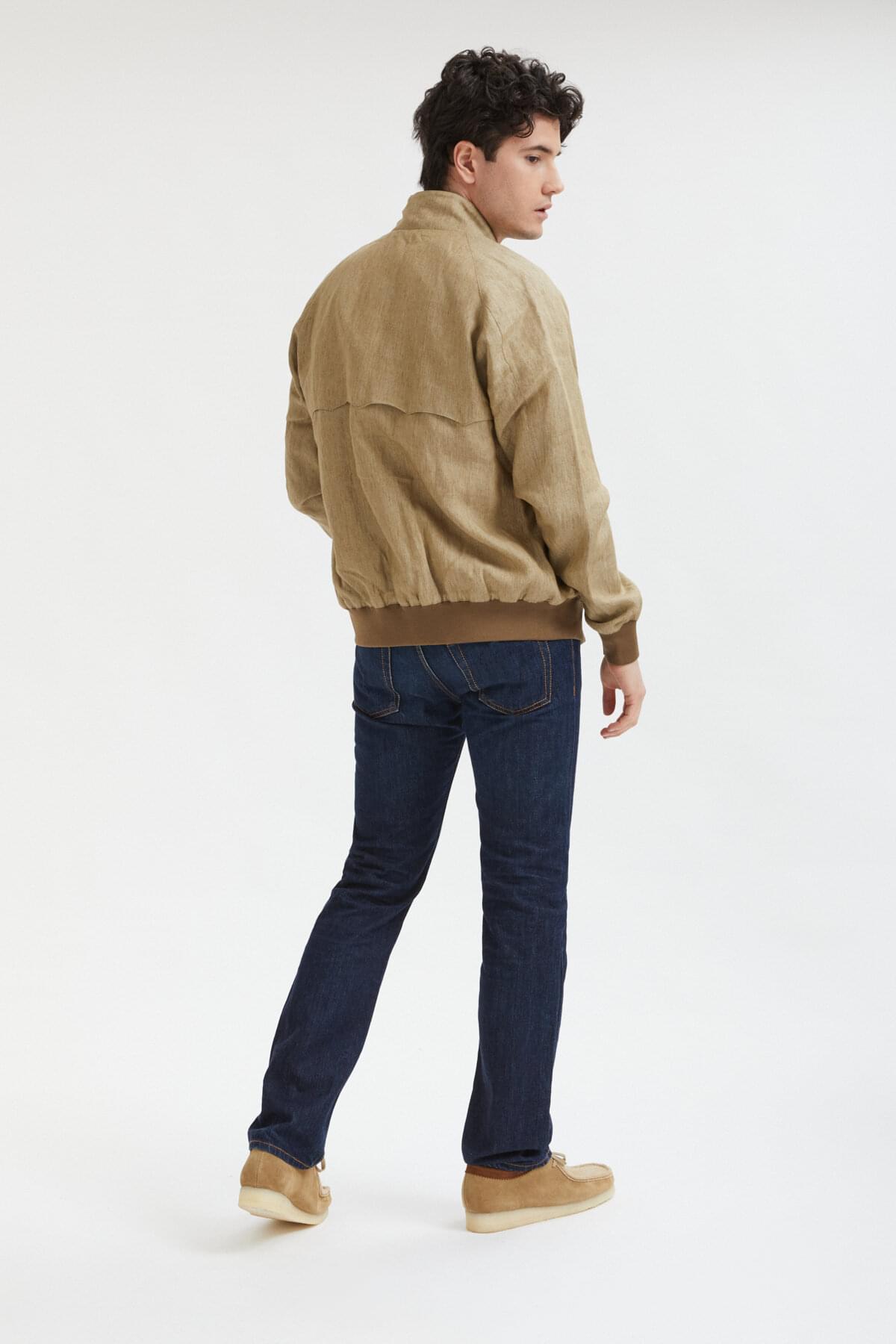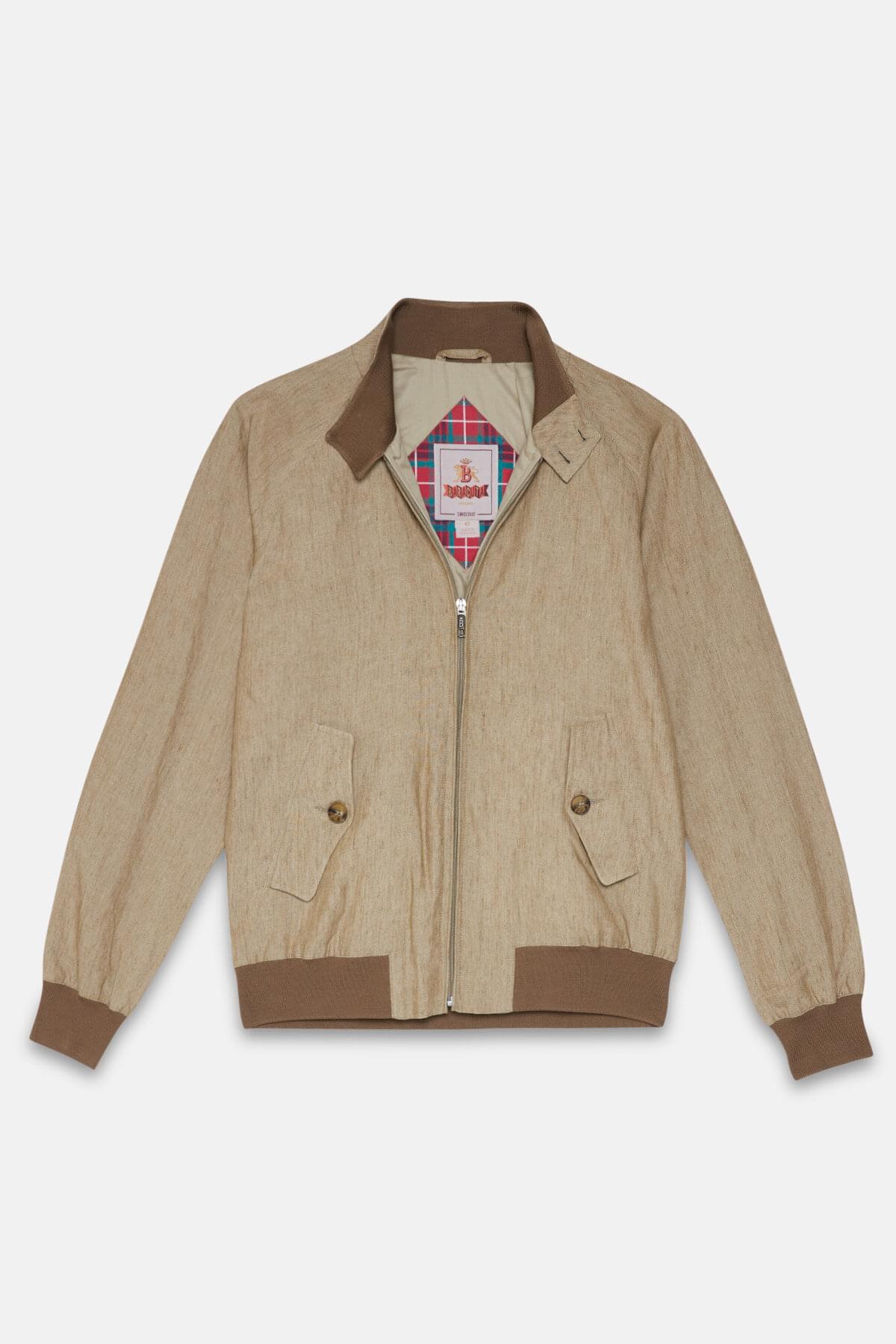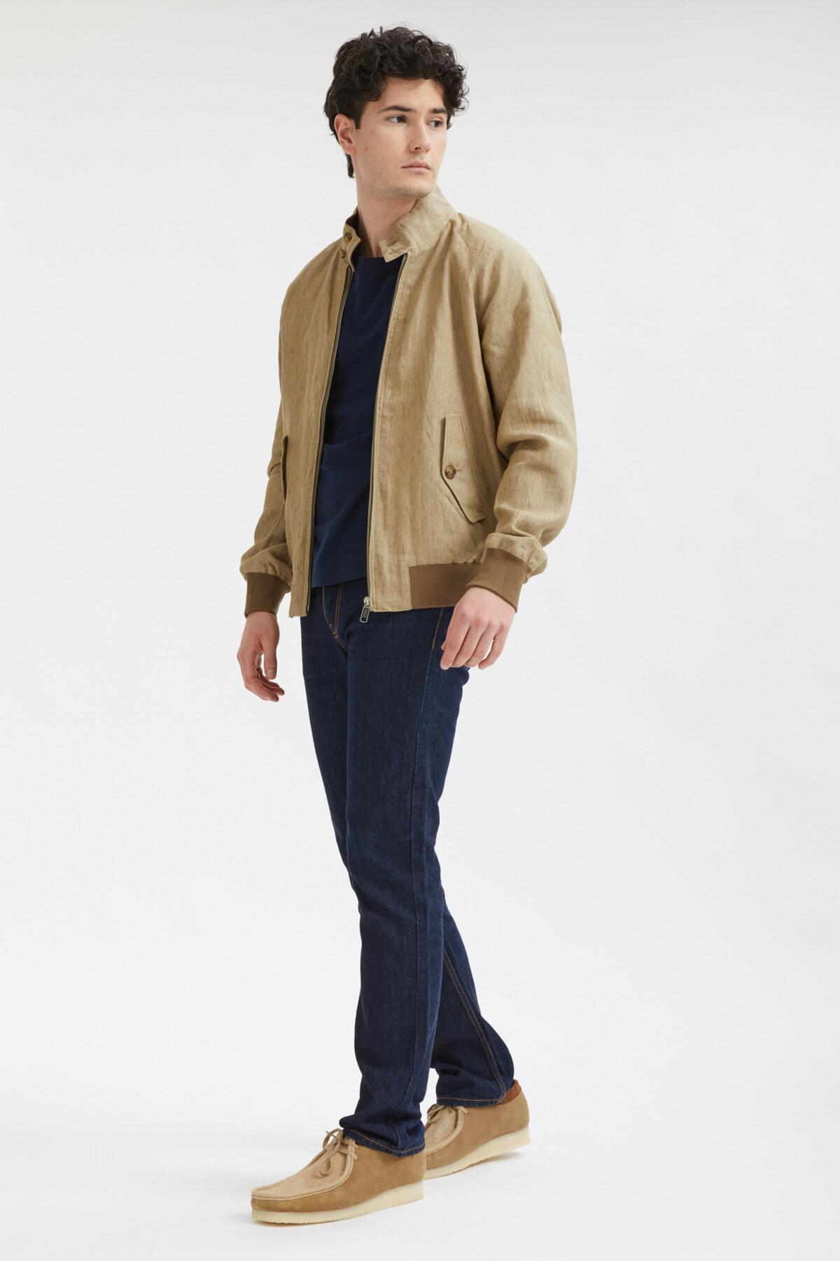 The G9 Linen is a fresh take on the classic Harrington Jacket, but with a few tweaks to take it up a notch. The jacket maintains all the G9's timeless features like the umbrella back yoke, slanted front pockets, and the signature two-button Baracuta dog ear collar. However, what sets it apart is the 100% pure linen fabric that gives it a contemporary, worn-in appearance. The lining is made of soft 100% cotton, so it feels comfortable to wear. The jacket is completed with some premium touches, such as the metal Baracuta logo on the zip and the exclusive Diamond Fraser label. You'll be mad to let this one slip by!