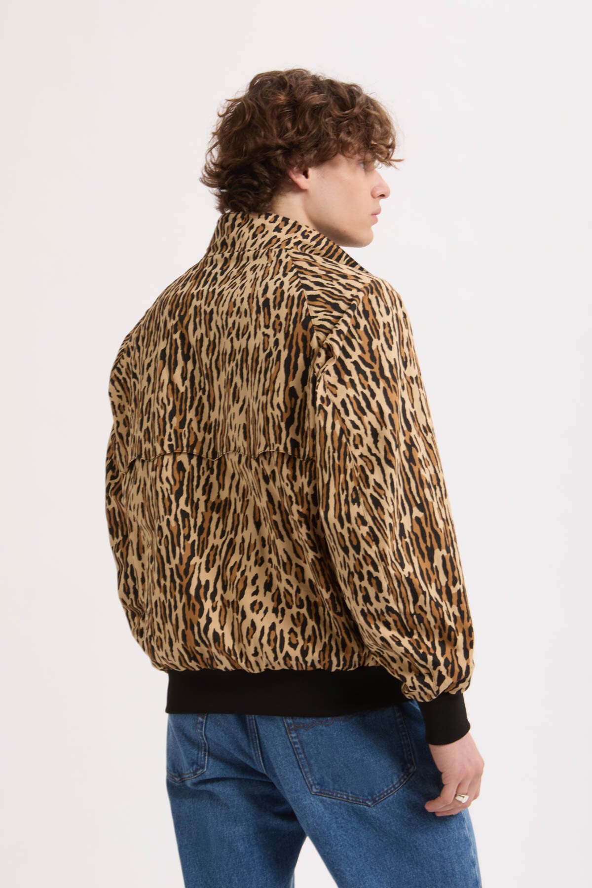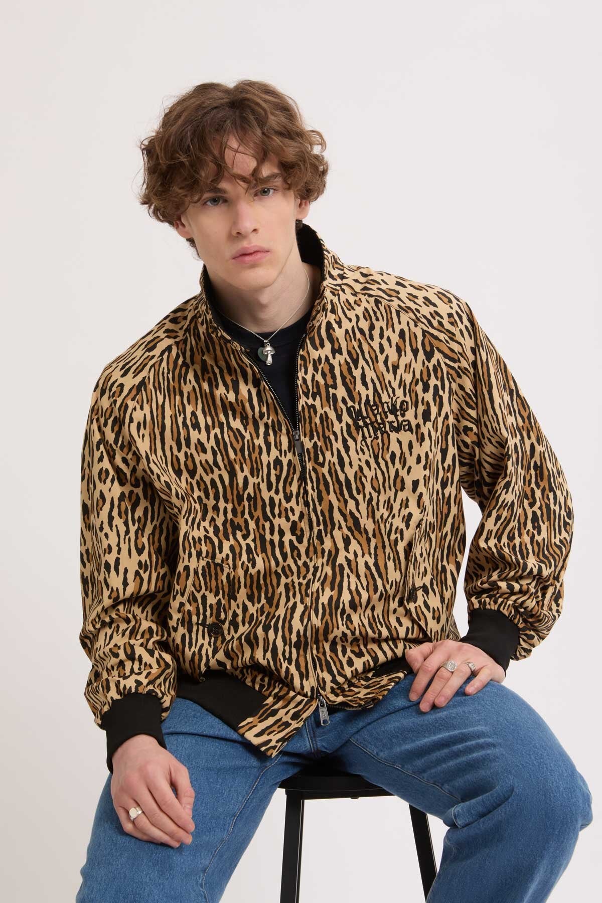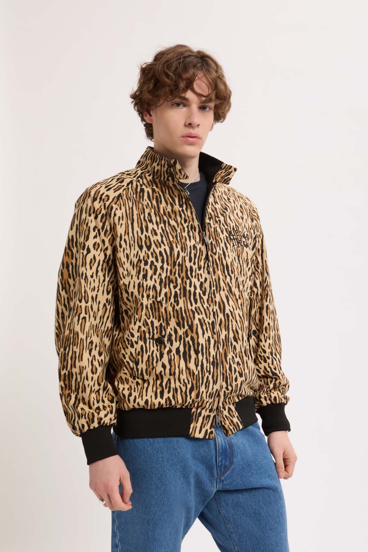 The jacket maintains the signature G9 construction, including the umbrella back yoke, raglan sleeves and ribbed Dog Ear collar with double-button closure. The collaboration is marked by “Wacko Maria” embroidered on the chest, a metal hanging chain and an internal pocket. For this edition, the jacket is finished with a leopard pattern exterior, a print long associated with Wacko Maria.